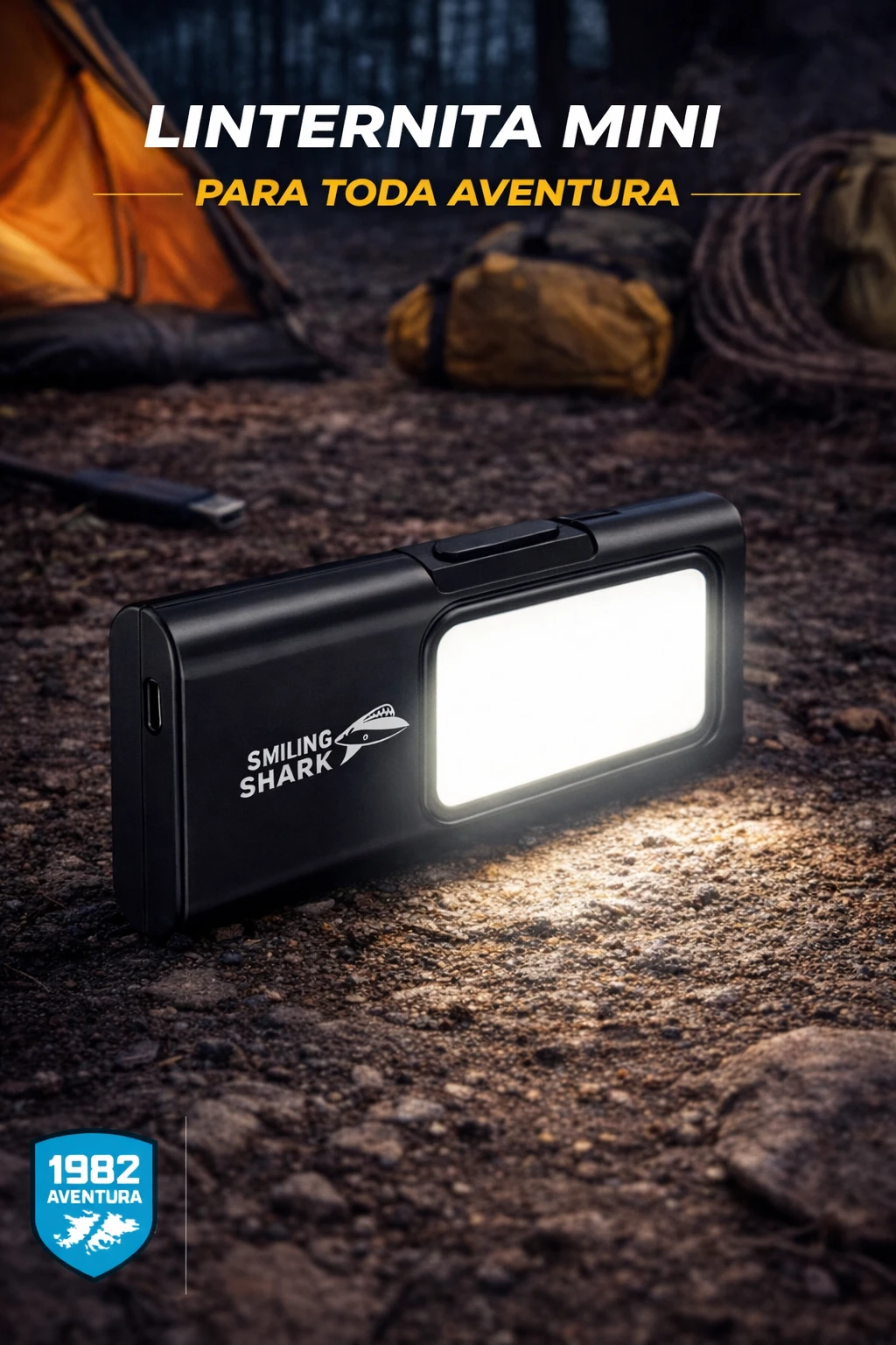 Iluminación compacta, potente y lista para acompañarte en cualquier aventura. La linterna COB Smiling Shark TIP065 ofrece gran luminosidad en un diseño portátil y resistente, ideal para actividades al aire libre y uso diario.