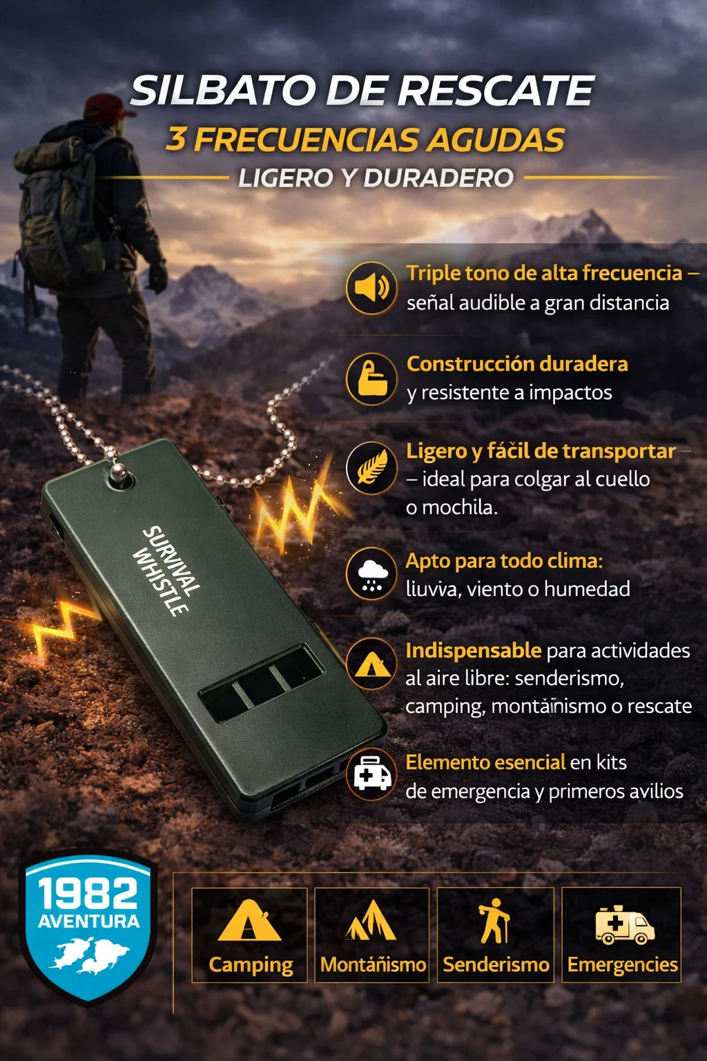 📢 Silbato de Rescate de 3 Frecuencias Agudas – Ligero y Duradero